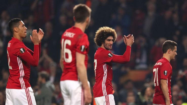 After winning the first leg in Spain, United were made to suffer through a nervous finish at Old Trafford before earning their place in the final. Marouane Fellaini's goal in the first half settled some nerves, but Facundo Roncaglia scored five minutes from time before Eric Bailly and Roncaglia were dismissed following a melee in midfield.